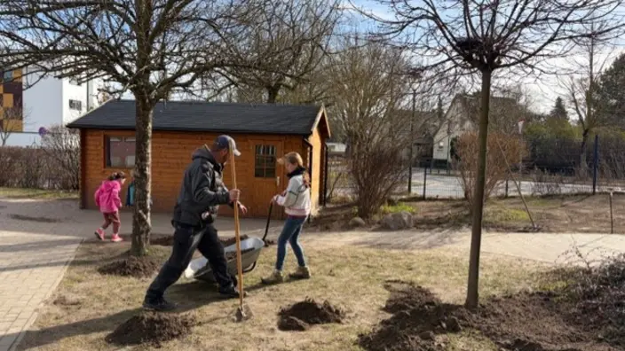 Heute stellten die Klassenstufen im Atrium gegenseitig ihre Projektergebnisse vor. Nun müssen wir ein ganzes Jahr bis zur nächsten Projektwoche warten! Steine sammeln, Laub harken, Mutterboden auffüllen, Garderobe auswischen, Schulhof fegen… es gibt viel zu tun auf unserem Schulgelände.