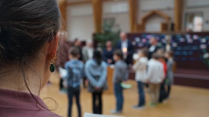Der feierliche Gottesdienst, geleitet von Pastor Stephan Fey, wurde von allen Grundschulkindern, den Lehrerinnen und Horterzieher/innen besucht, die auch in die Gestaltung des Gottesdienstes miteinbezogen worden sind. Die fröhliche und festliche Atmosphäre wurde durch den gemeinsamen Gesang der gesamten Grundschule bereichert.